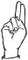 На ћирилици написано ВАСИЉ БОГДАНОВИЋ састоји се из 15 слова [?]. Исписано ћириличном једноручном азбуком за глувонеме:
